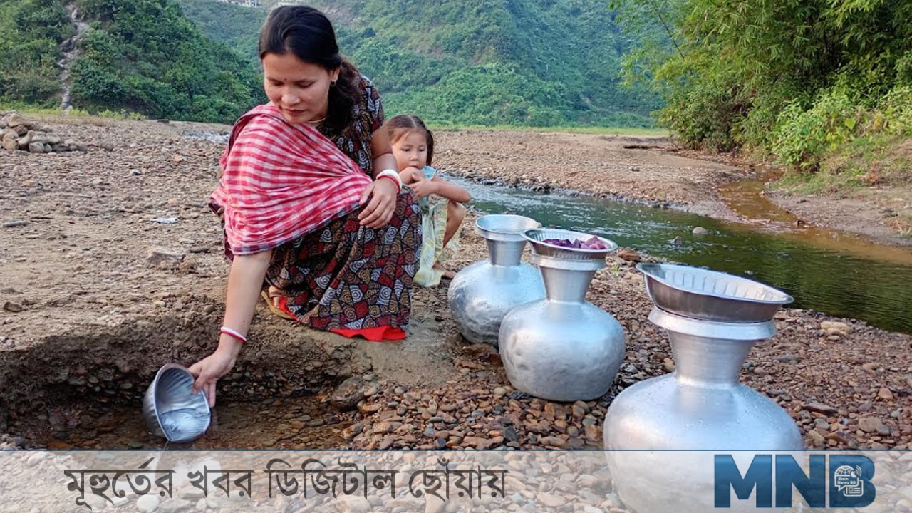 কিন্তু ছোট্ট আকৃতি জানে না এই পানি সংগ্রহ শুধু খেলা নয়, তাদের বেঁচে থাকার লড়াই। পাহাড়ি এই ছড়ার বহমান ধারা তাদের পরিবারের একমাত্র সুপেয় পানির উৎস।