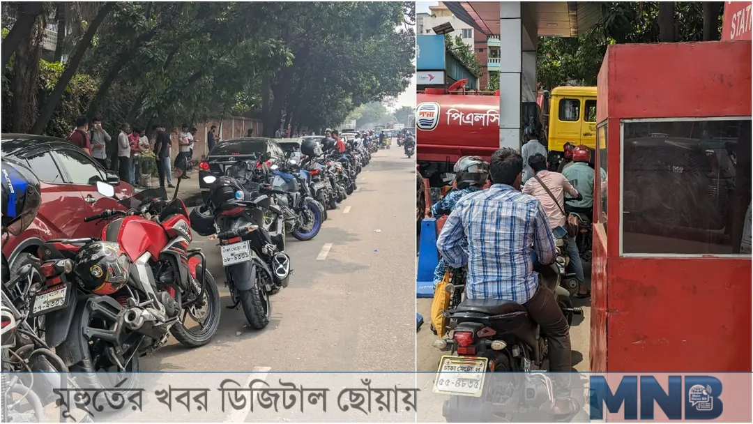 রোববার (১৯ এপ্রিল) রাজধানীর বিভিন্ন পাম্প সরেজমিনে ঘুরে দেখা যায়, জ্বালানি সংগ্রহের জন্য বাইকারদের দীর্ঘ সারি।